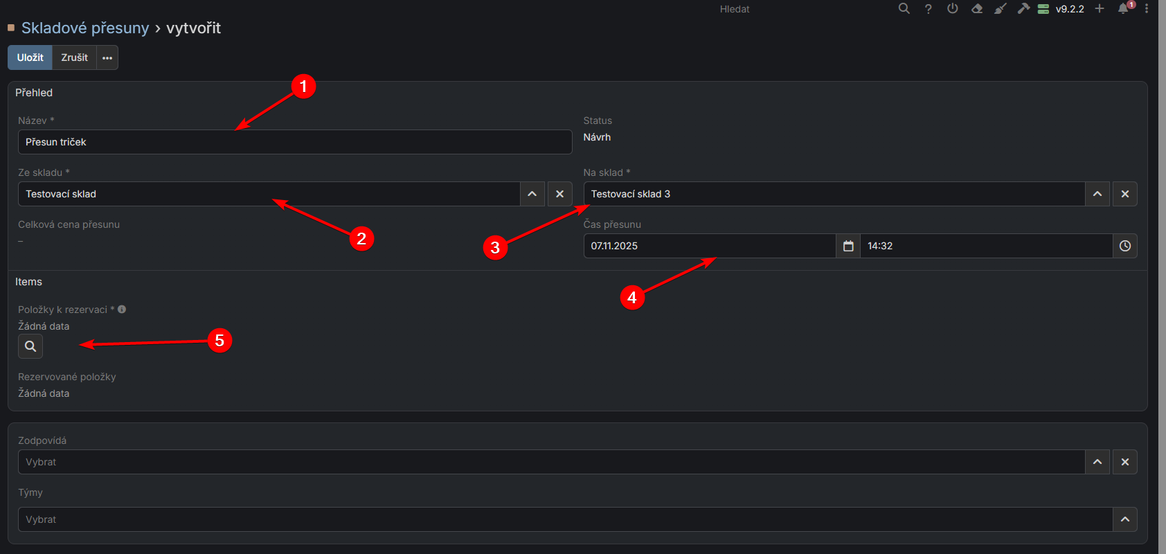Skladový přesun slouží k přesunu materiálu mezi sklady nebo mezi pozicemi v rámci jednoho skladu.