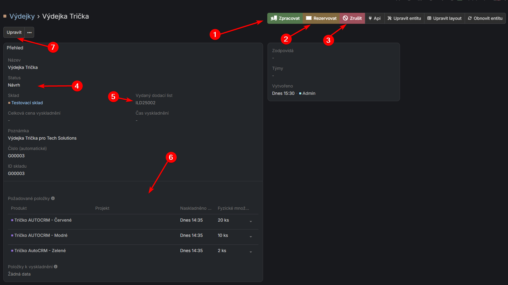 Před zpracováním můžete položky rezervovat. Rezervace zajistí, že produkty nebudou použity jinde, dokud výdejku nezpracujete.